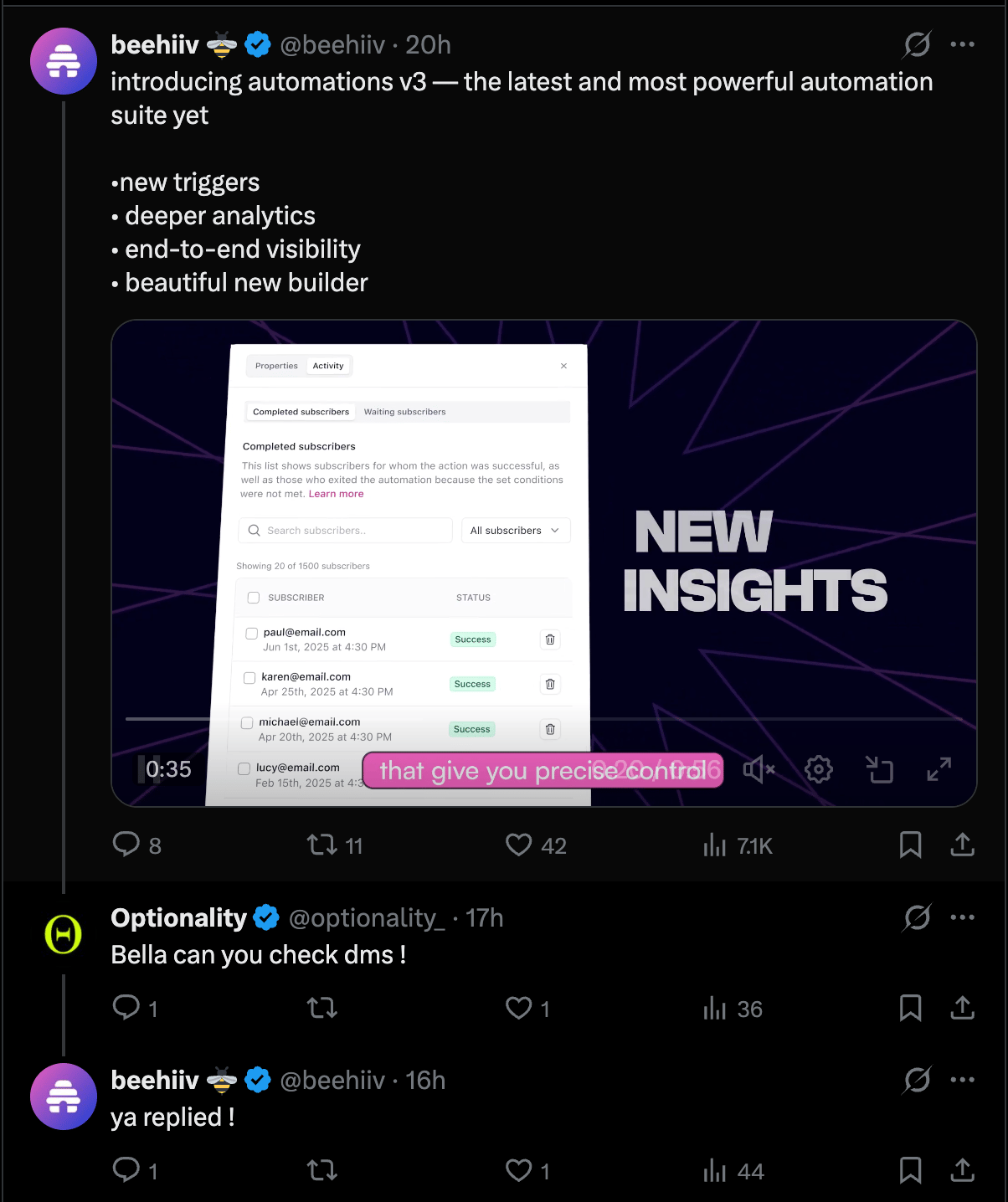 And it is in his schedule, he invests his time to comment and build a community. Also, he has a DM hour to interact with his potential leads and community folks.
